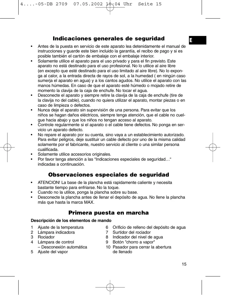 | Tipo de dispositivo | Plancha de vapor |