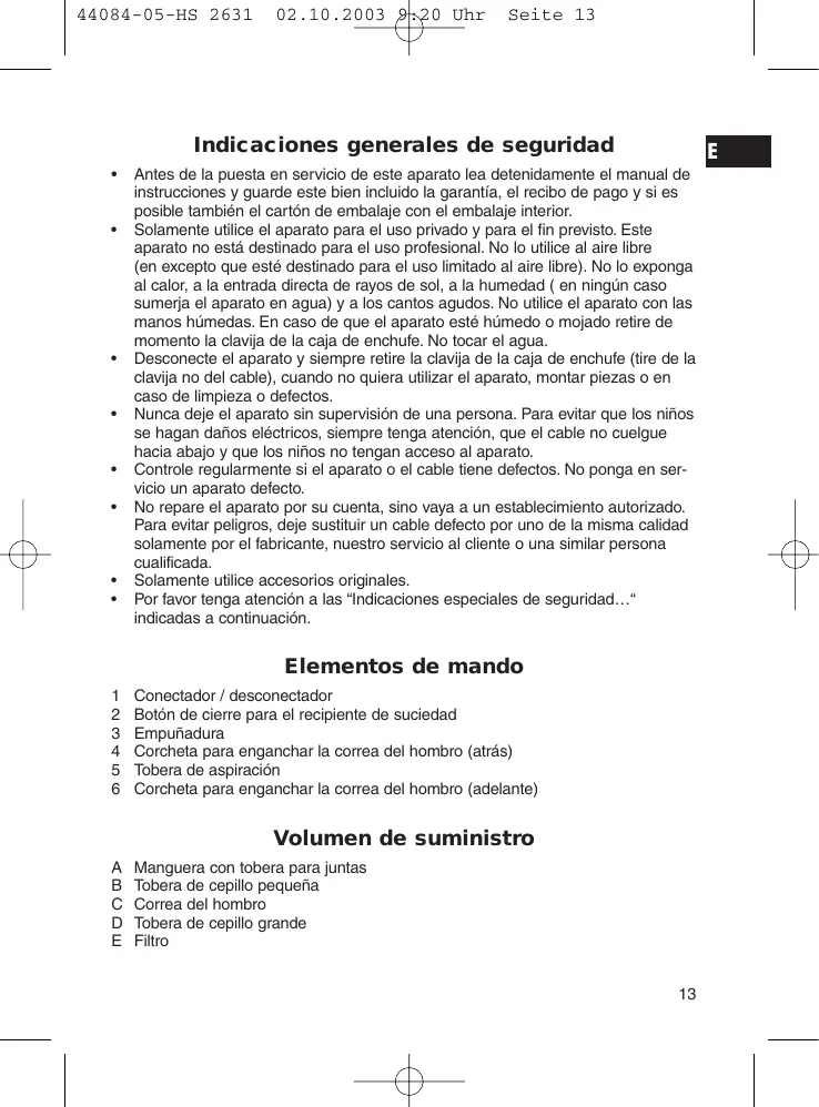 HS 2631 - Aspiradora CLATRONIC - Manual de uso y guía de instrucciones gratis