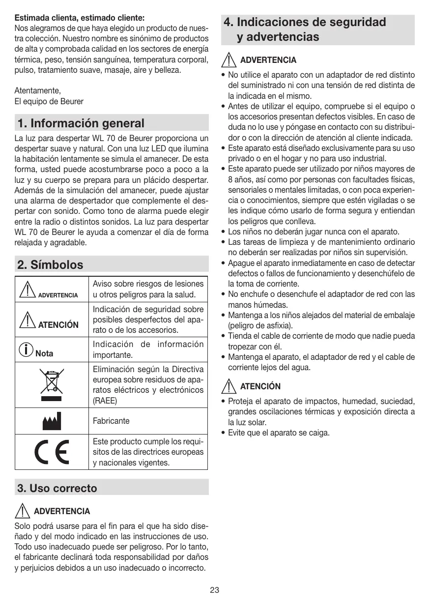 WL 70 - BEURER - Manual de uso y guía de instrucciones gratis