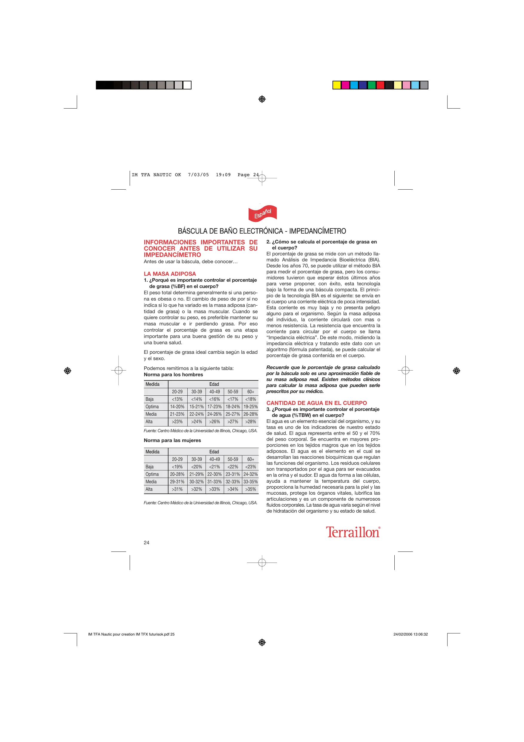 BÁSCULA DE BAÑO ELECTRÓNICA - IMPEDANCÍMETRO PRESENTACIÓN DEL PRODUCTO INTRODUCCIÓN El impedancímetro Terraillon se concibe y se realiza en una fábrica certificada ISO 9001 e ISO