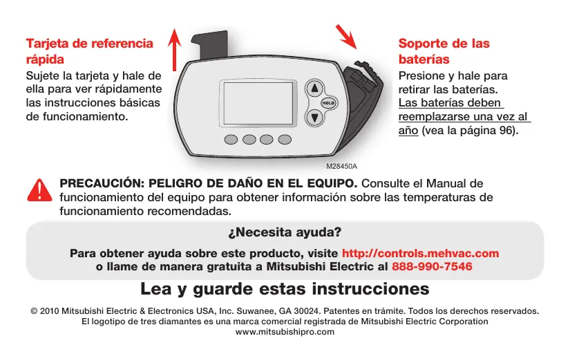 Para obtener ayuda sobre este producto, visite http://controls.mehvac.com o llame de manera gratuita a Mitsubishi Electric al 888-990-7546