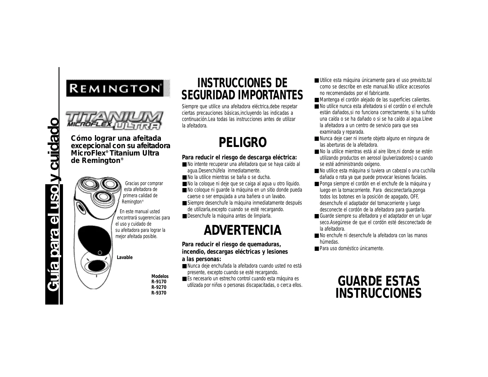 MicroFlex® Titanium Ultra de Remington® Gracias por comprar esta afeitadora de primera calidad de Remington® En este manual usted encontrará sugerencias para el uso y cuidado de su afeitadora para lograr la mejor afeitada posible.
