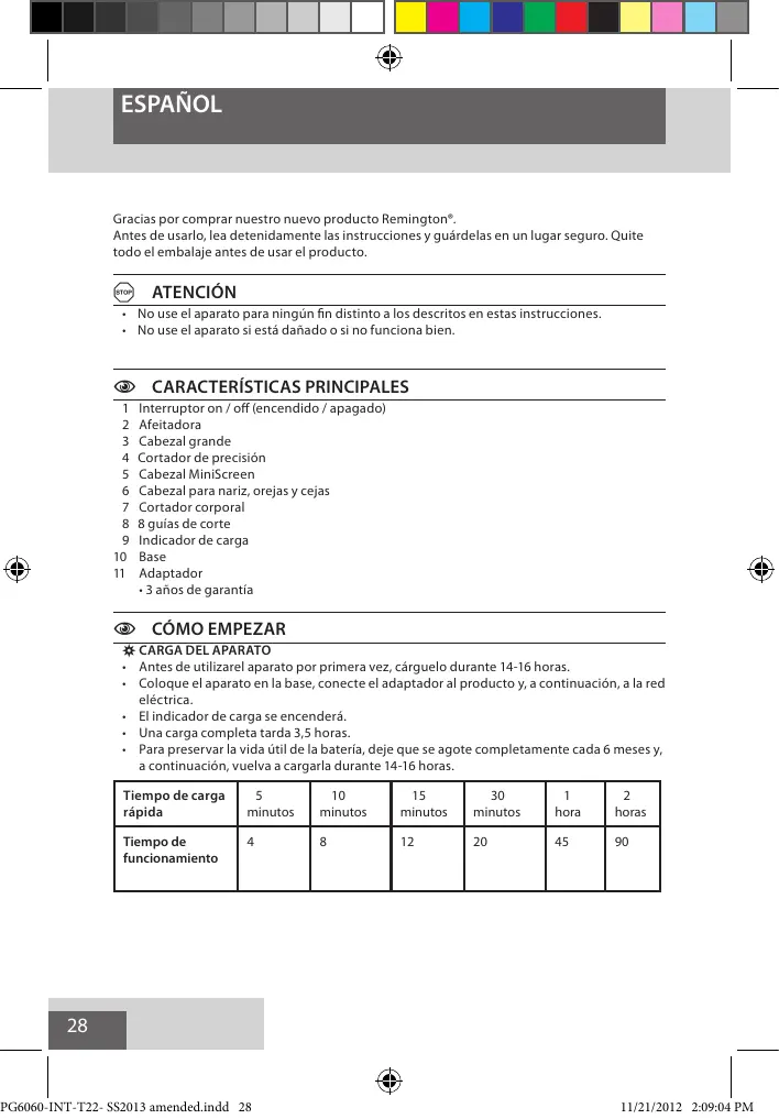 Encuentra gratis el manual del aparato PG6060 REMINGTON en formato PDF.