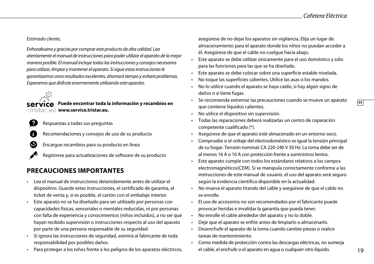Puede encontrar toda la información y recambios en www.service.tristar.eu.