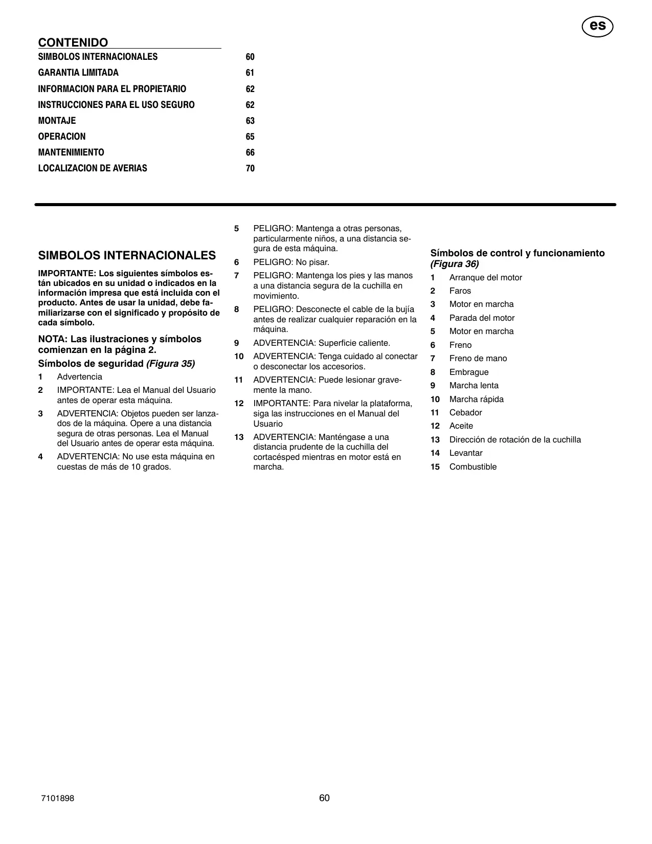 NOTA: Las ilustraciones y símbolos comienzan en la página 2.
