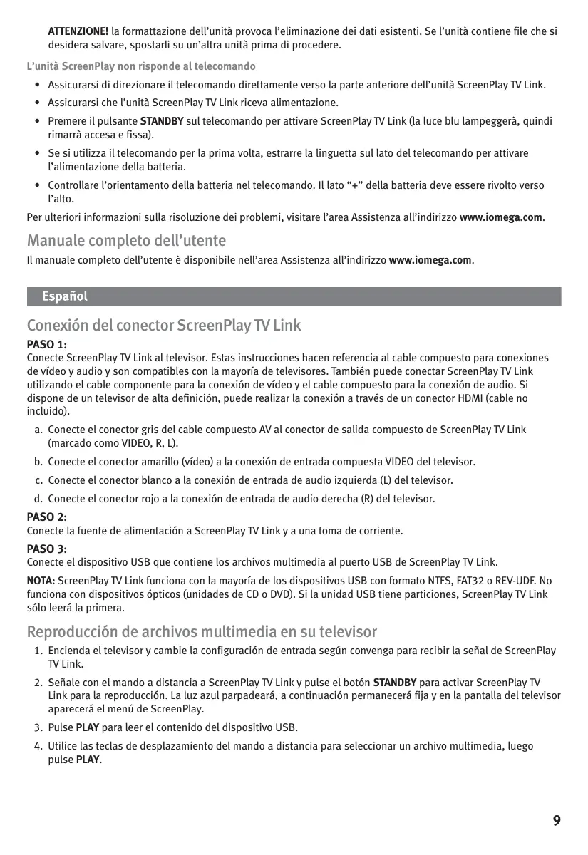 MANUAL DE USUARIO SCREENPLAY TV LINK IOMEGA
