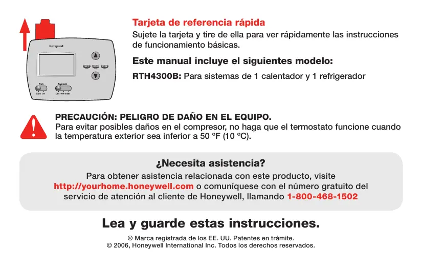 Para obtener asistencia relacionada con este producto, visite http://yourhome.honeywell.com o comuníquese con el número gratuito del servicio de atención al cliente de Honeywell, llamando 1-800-468-1502