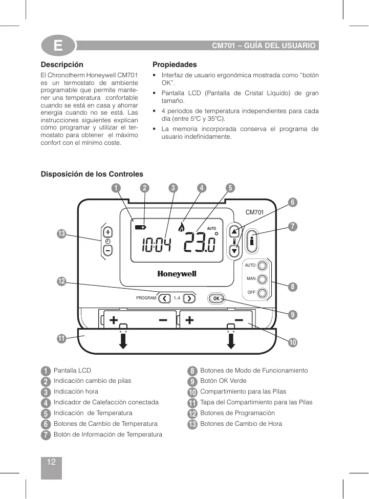 CM701 - Termostato HONEYWELL - Manual de uso y guía de instrucciones gratis