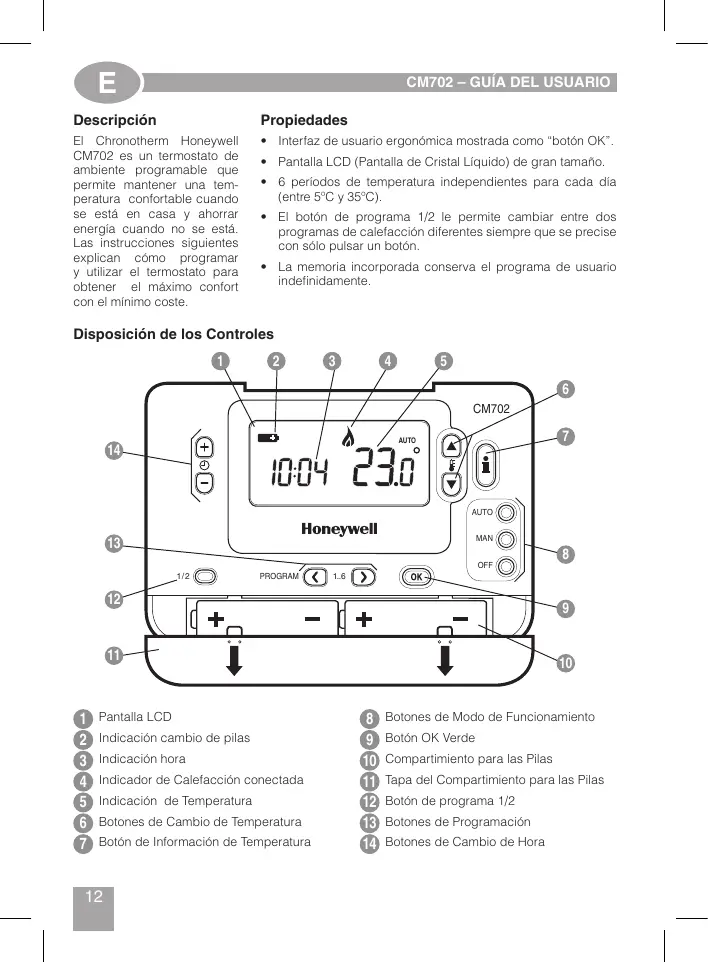 CM702 - Termostato HONEYWELL - Manual de uso y guía de instrucciones gratis