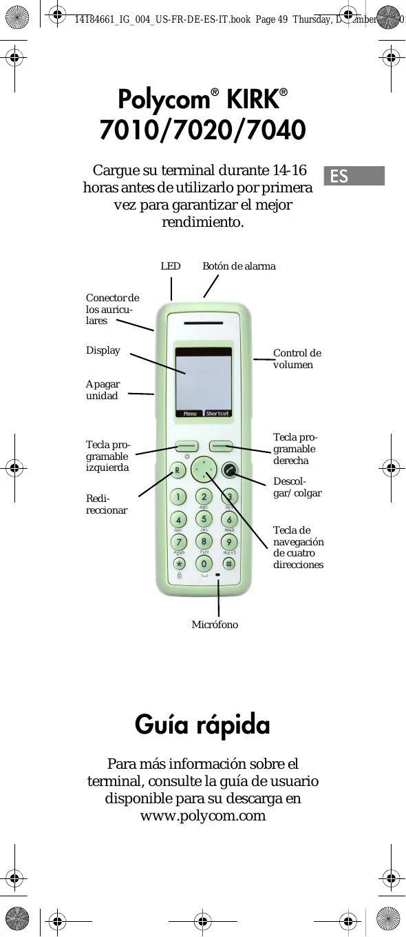 KIRK 7040 - Teléfono inalámbrico POLYCOM - Manual de uso y guía de instrucciones gratis