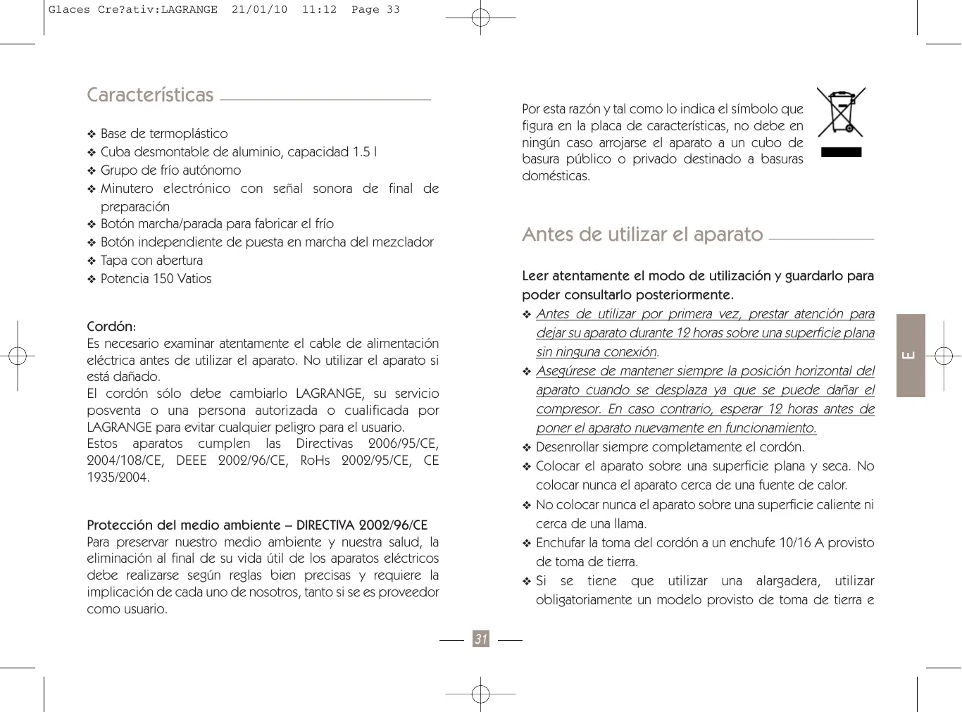 MANUAL DE USUARIO 419002 GLACES CREATIV' LAGRANGE