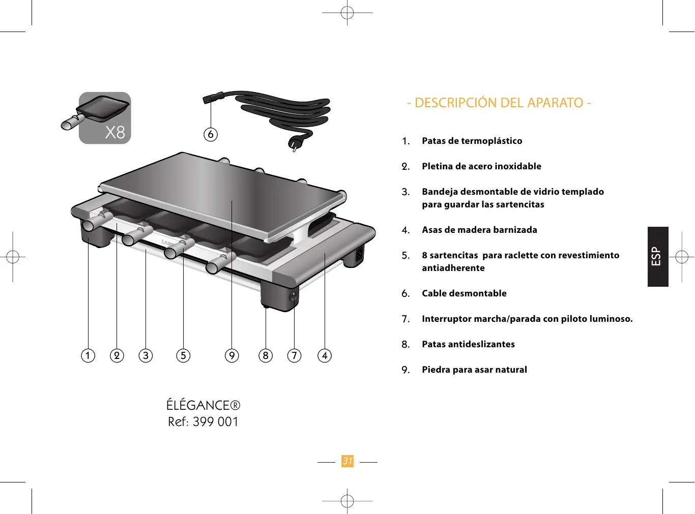 ELEGANCE - Raclette eléctrica LAGRANGE - Manual de uso y guía de instrucciones gratis