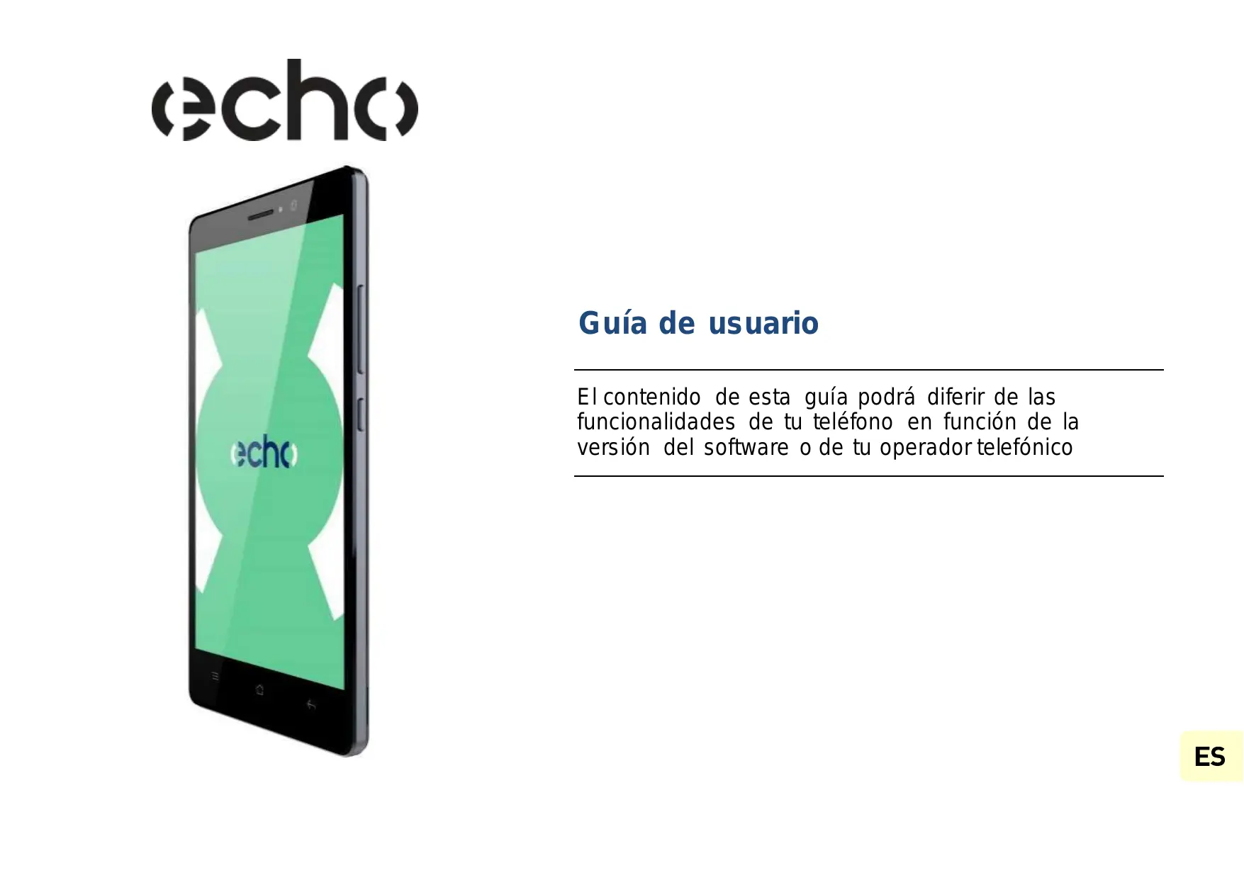 Un tercero independiente, el operador, proportora la tarjeta SIM y la red o sistemas (telefónica u otro) en el que funciona este aparato. ECHO renuncia expresamente a cualquier responsabilidad relativa al functionamento, la disponibiliad, la cobertura, los servicios o la calidad de la red o del sistema (telefónica u otro). Si su tarjeta SIM no está en el formato社会稳定, le acontejos que se pide una micro-SIM a su operador telefónica. La responsabilidad de ECHO y su servicios post-venta autorizzato se limita únicamente al coste de reparación y/o de sustitución del equipo durante el periodo de garantía.