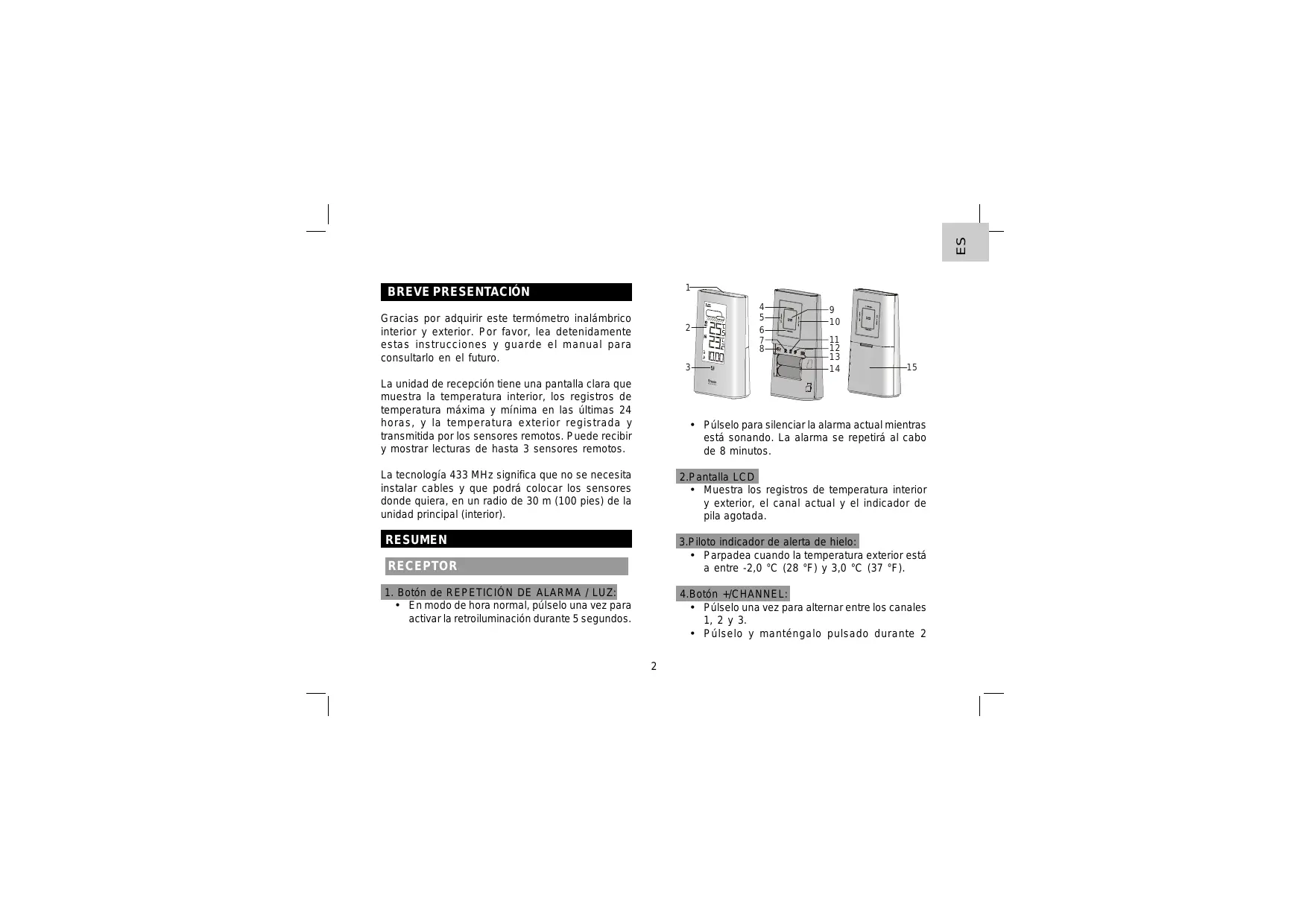 Gracias por adquirir este termómetro inalámbrico interior y exterior. Por favor, lea detenidamente estas instrucciones y guarde el manual para consultarlo en el futuro.