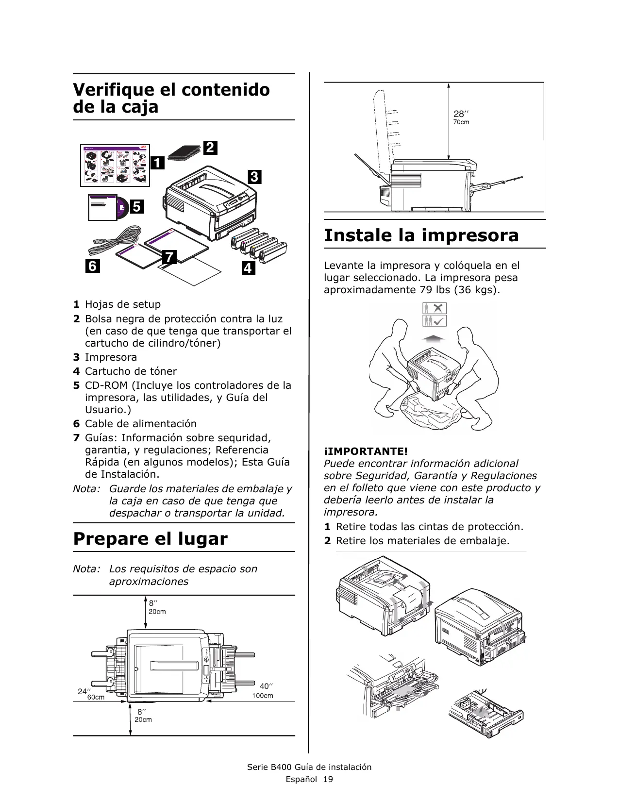 Puede encontrar información adicional sobre Seguridad, Garantía y Regulaciones en el folleto que viene con este producto y debería leerlo antes de instalar laimpsresora.