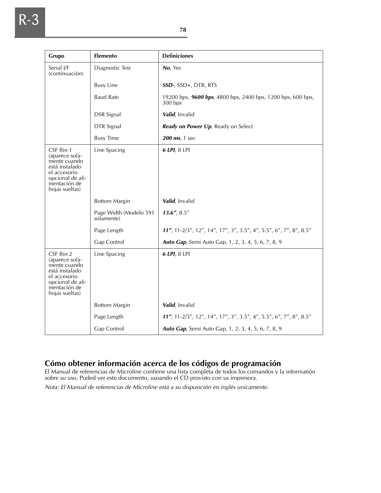 | Resolución de impresión | 80 x 132 caracteres por segundo |