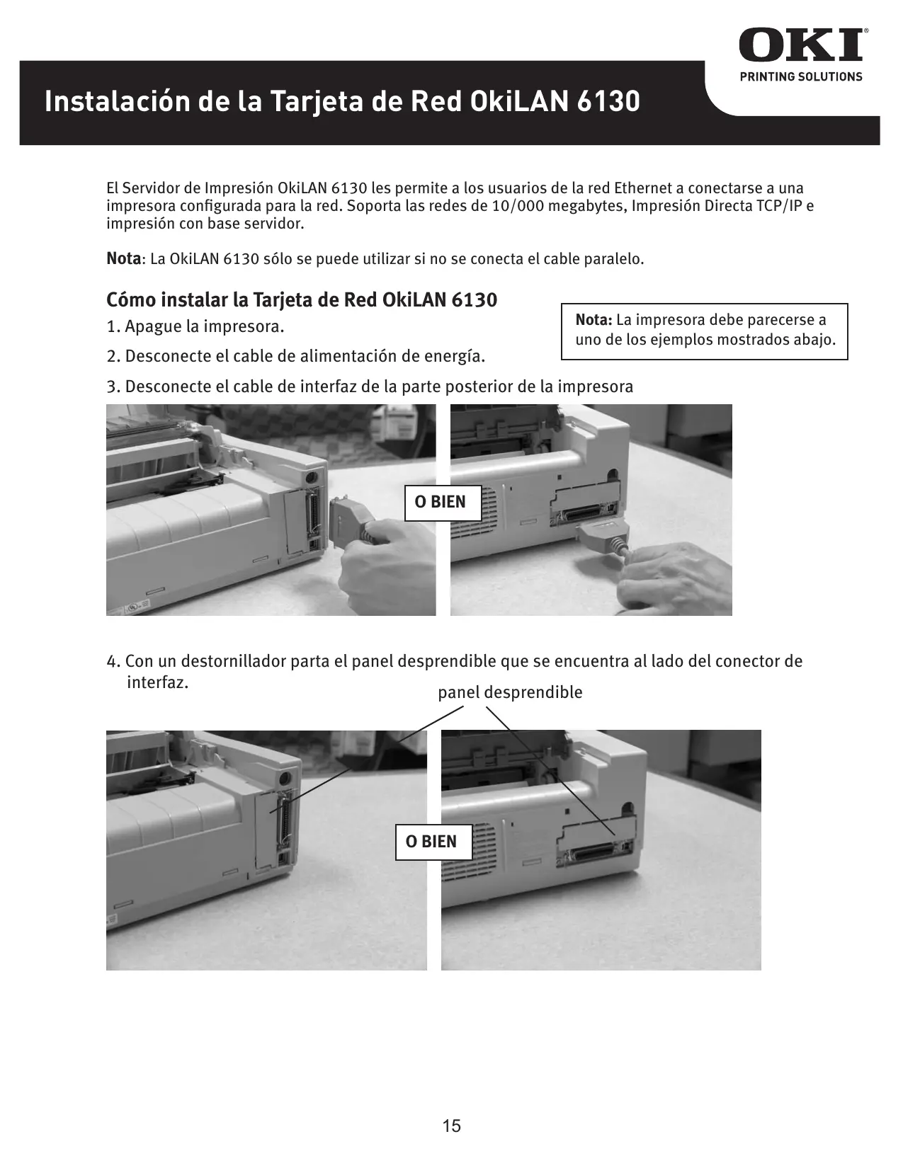 Nota: La OkiLAN 6130 solo se pueda utiliser si no se conecta el cable paralelo.