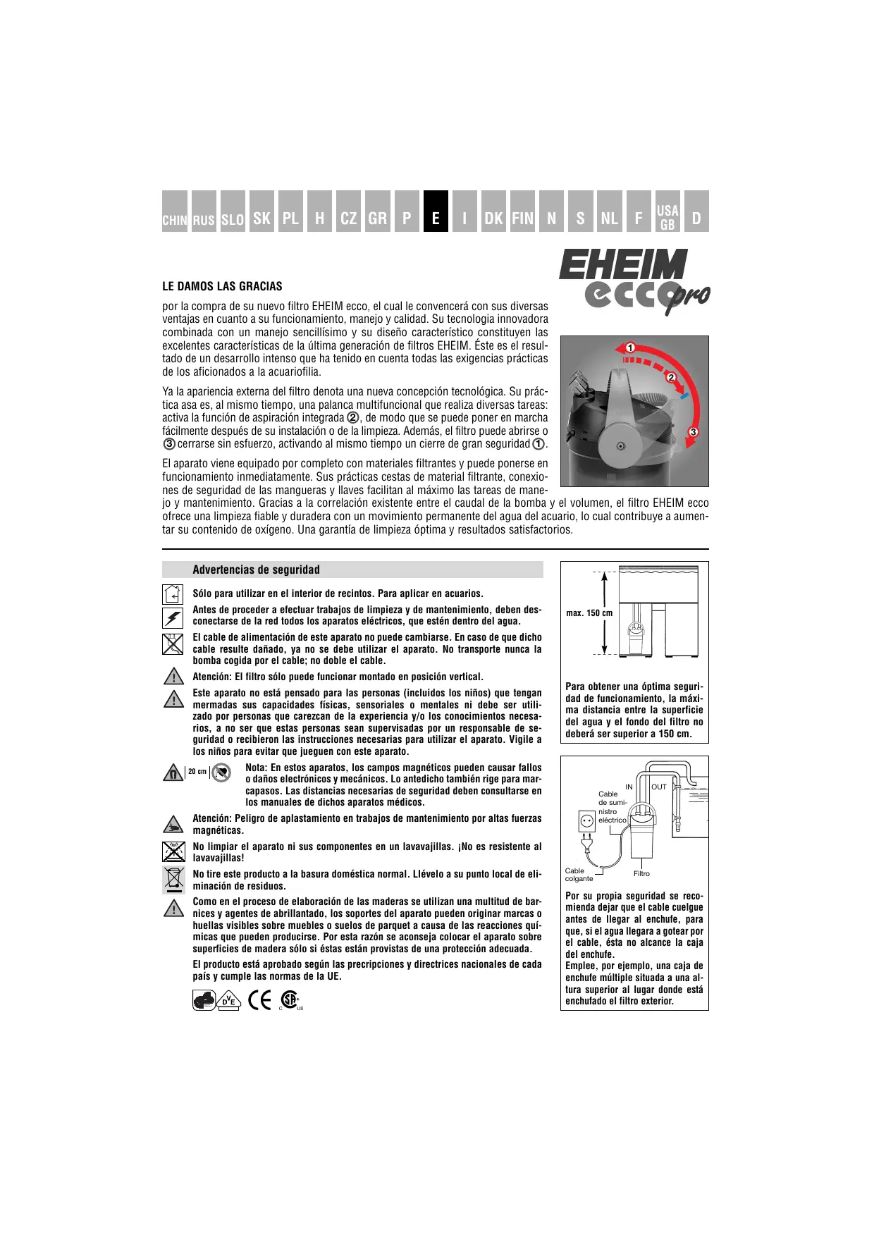 ECCO PRO 2032 - Filtro de acuario EHEIM - Manual de uso y guía de instrucciones gratis