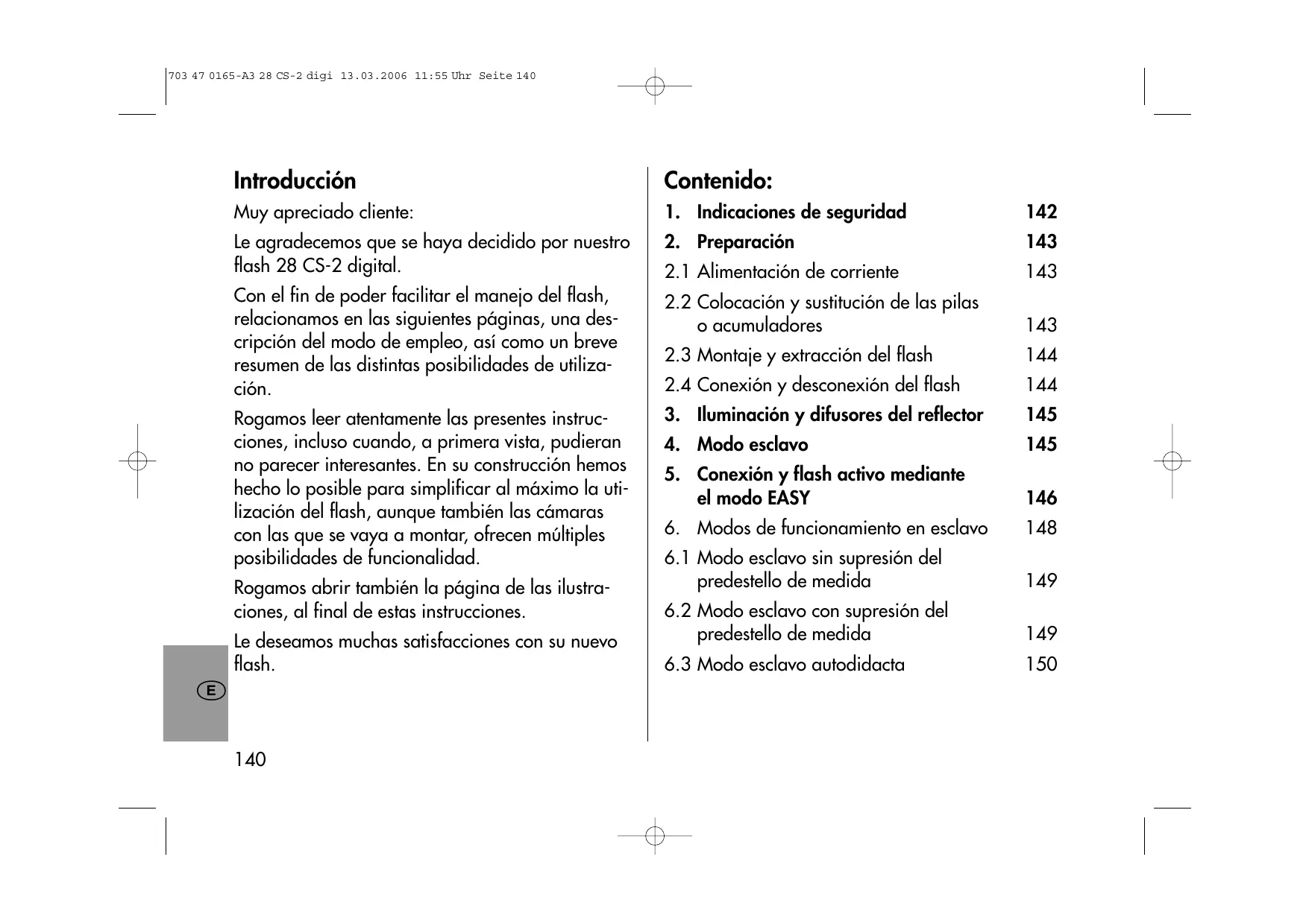 Con el fin de poder fácilar el manejo del flash, relacionamos en las siguientes páginas, una descripción del modo de empleo, asi como un breve resumen de lasDistinctas posibilidades deutilización.