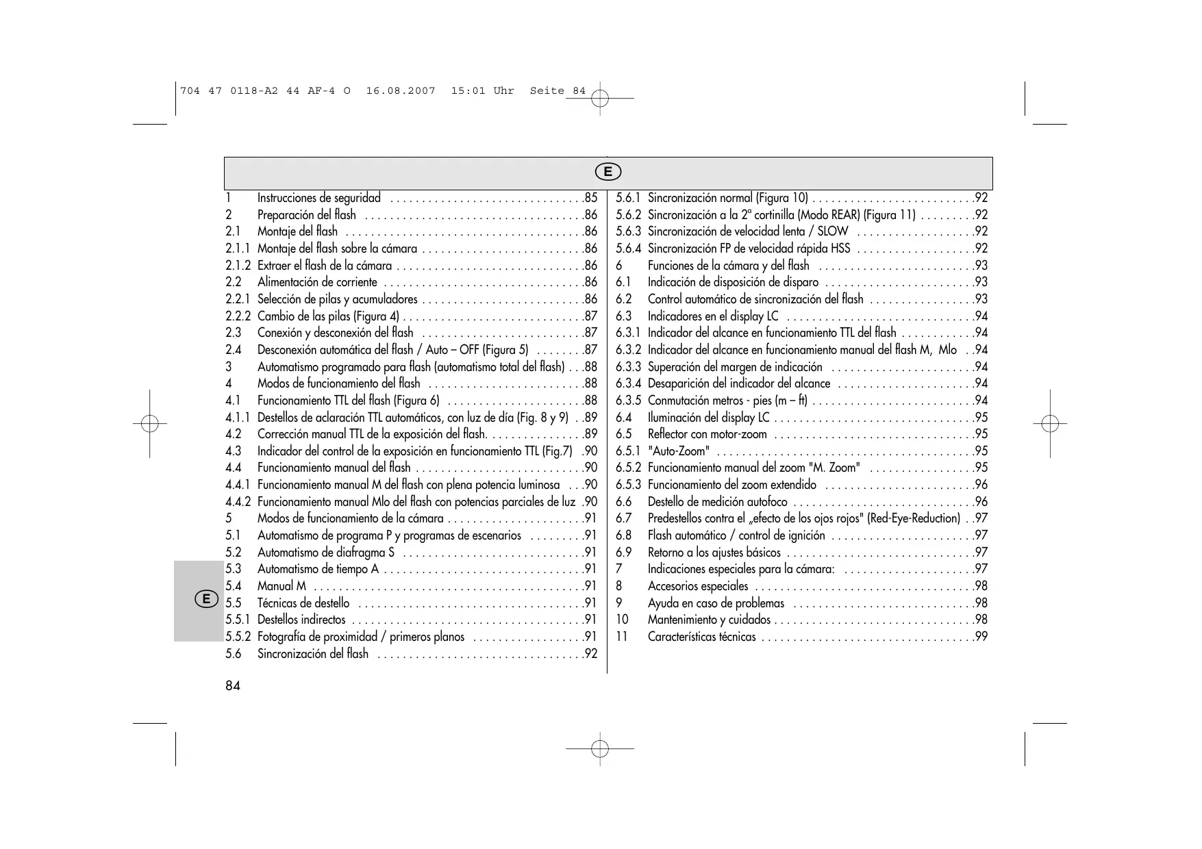 - Flash automático / control de ignición p. 97