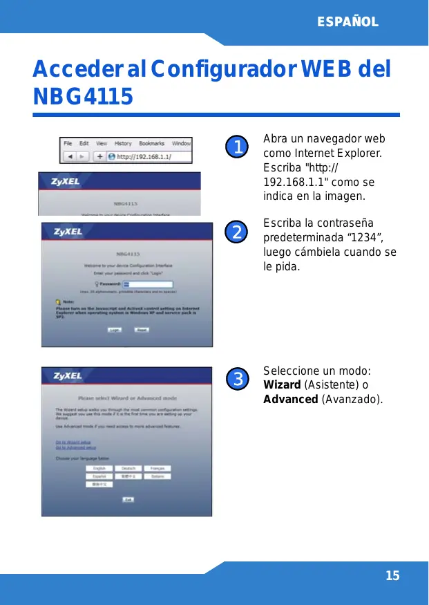 Conectar al NBG4115 luego seleccionar el modo Wizard