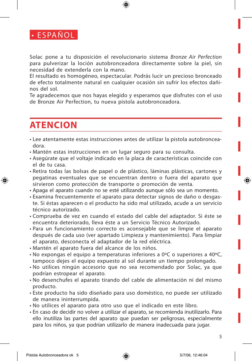 - Lee atentamente estas instrucciones antes de utiliser la pistola autobronceadora.