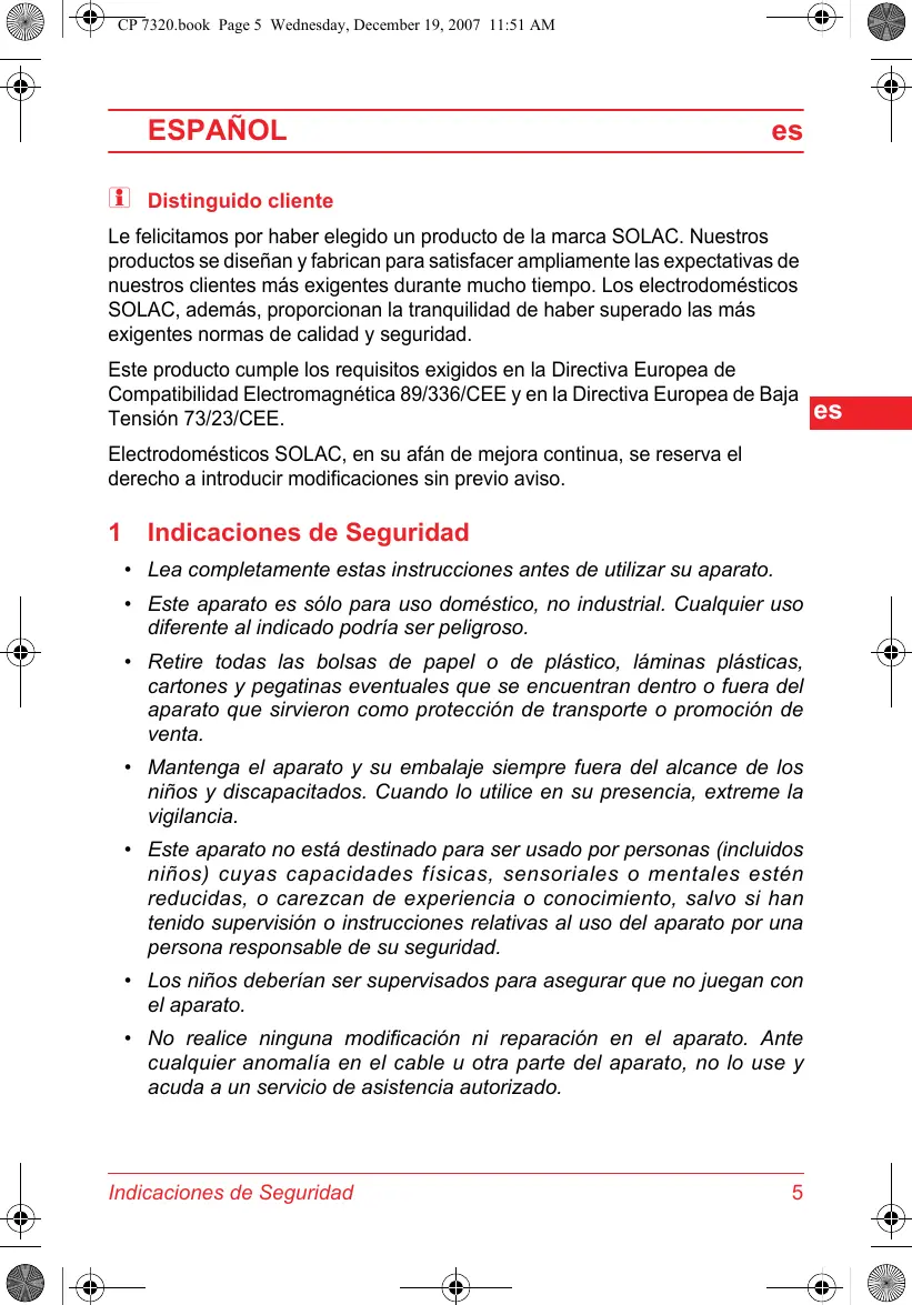 Encuentra gratis el manual del aparato CP7320 SOLAC en formato PDF.