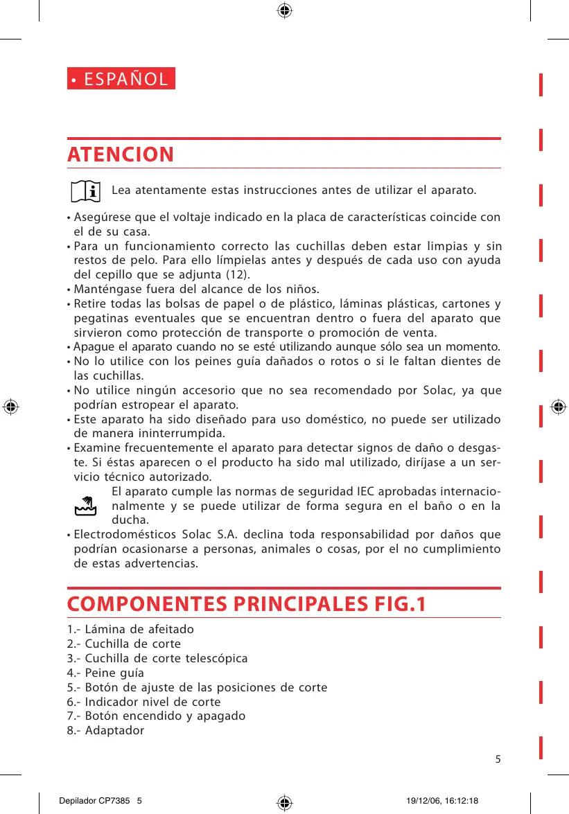 CP7385 - Rasuradora eléctrica SOLAC - Manual de uso y guía de instrucciones gratis