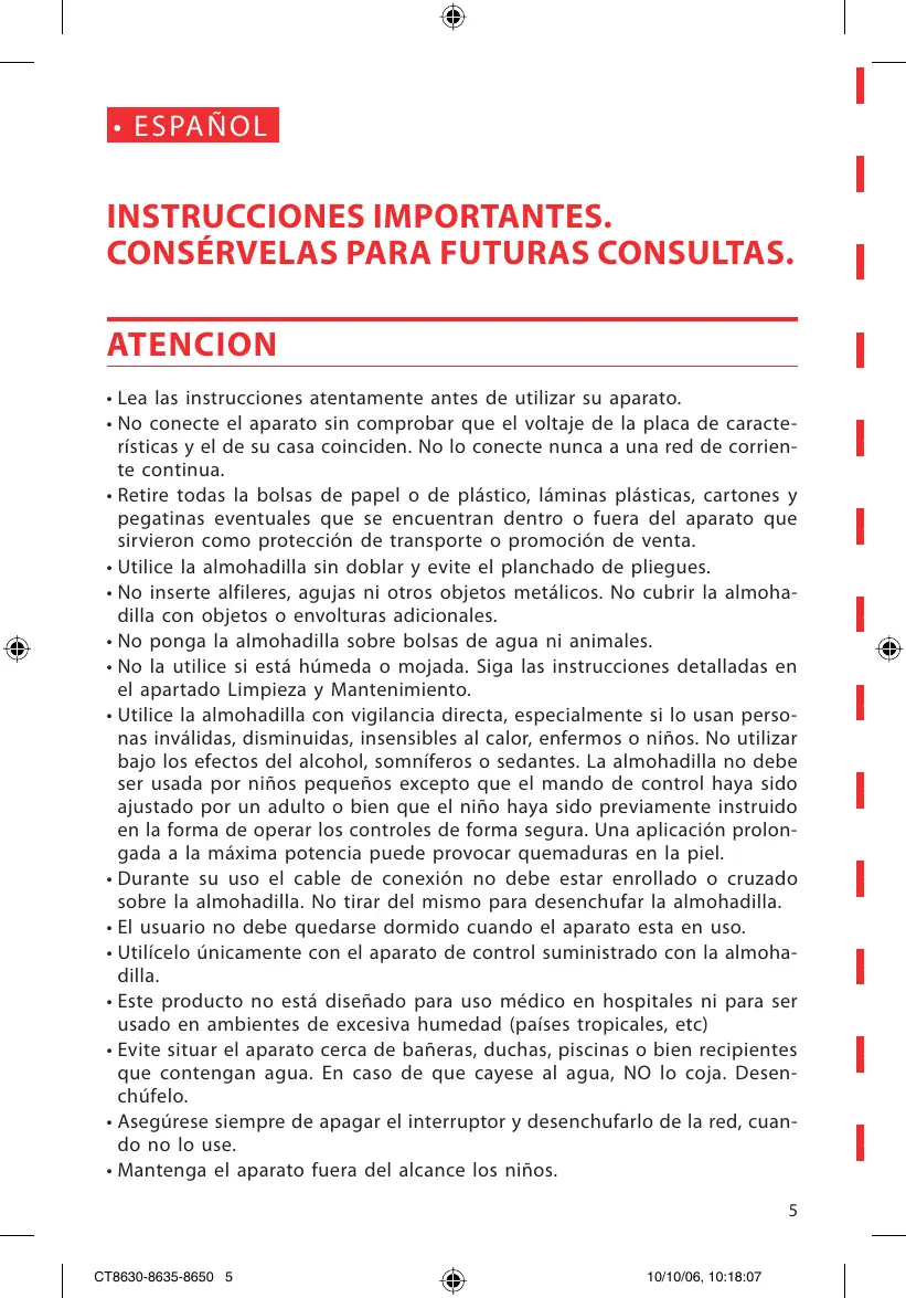 CT8635 - Cojín eléctrico SOLAC - Manual de uso y guía de instrucciones gratis