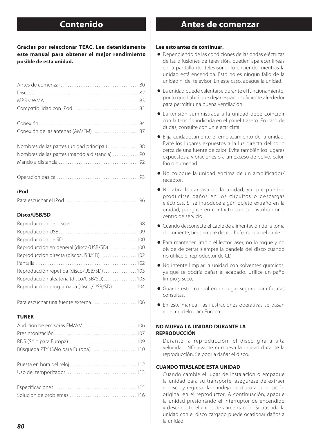 Gracias por seleccionar TEAC. Lea detenidamente este manual para obtener el mejor rendimiento posible de esta unidad.