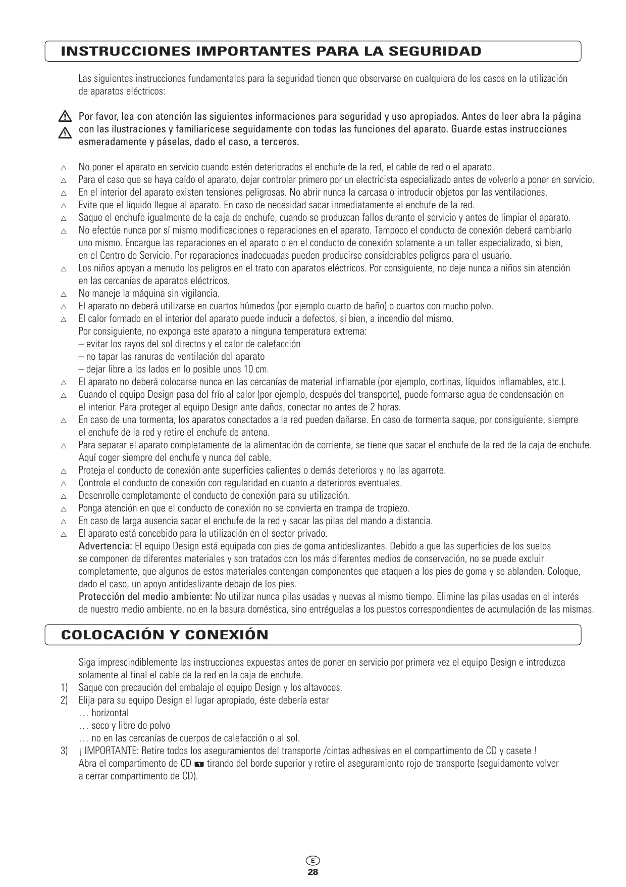 EQUIPO DESIGN CON CD-PLAYER VERTICAL Instrucciones para el manejo y la seguridad