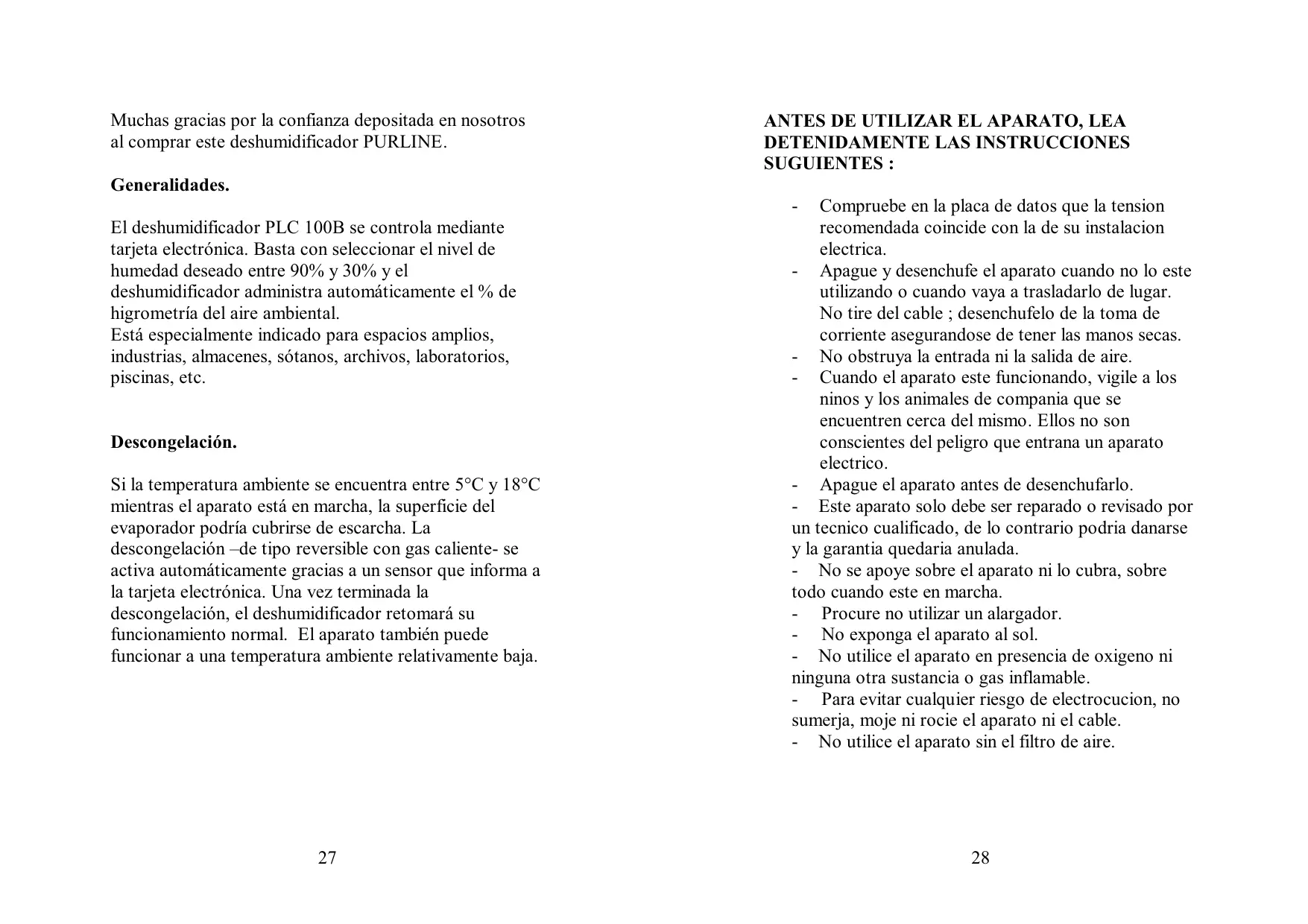 Muchas gracias por la confianza depositada en nosotros al comprar este deshumidificador PURLINE.