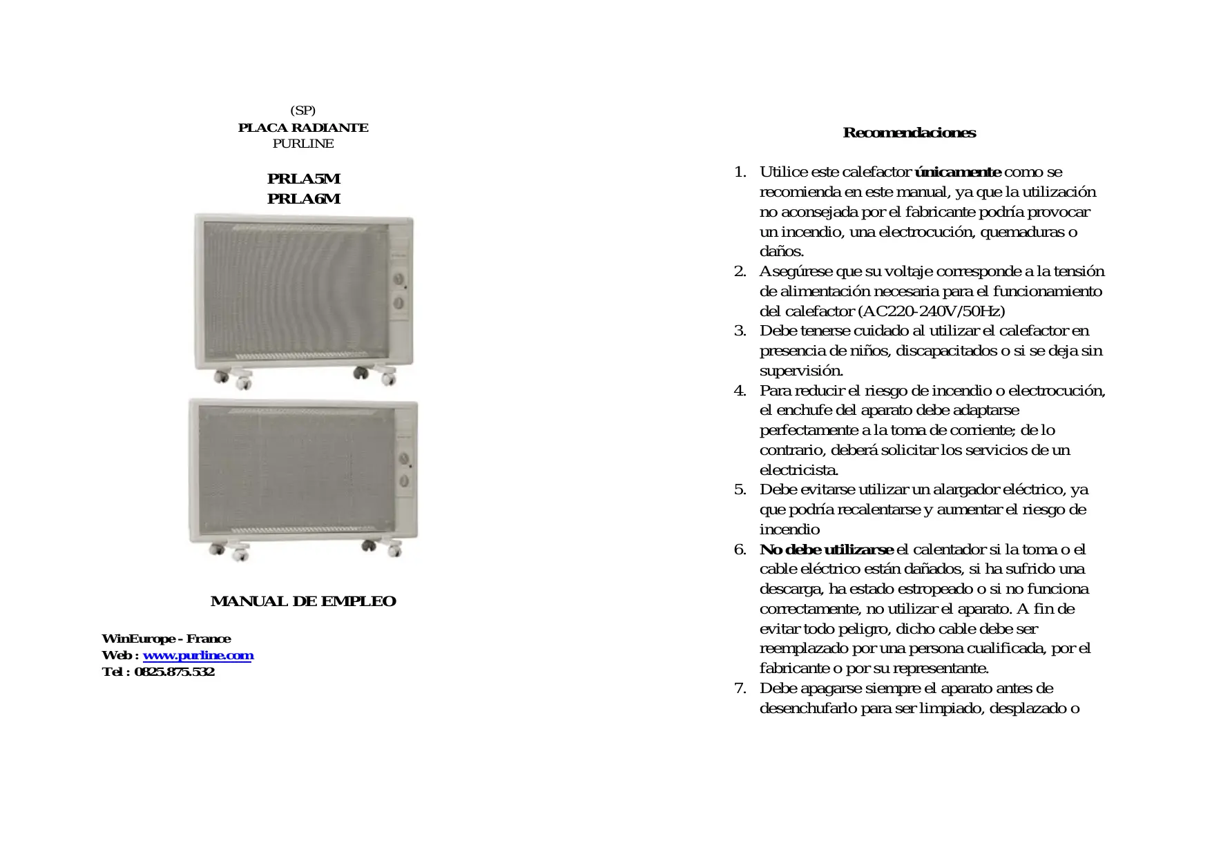 PRLA5M - Calefacción eléctrica PUR LINE - Manual de uso y guía de instrucciones gratis