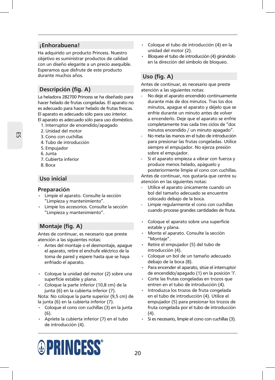 Encuentra gratis el manual del aparato YONANAS PRINCESS en formato PDF.