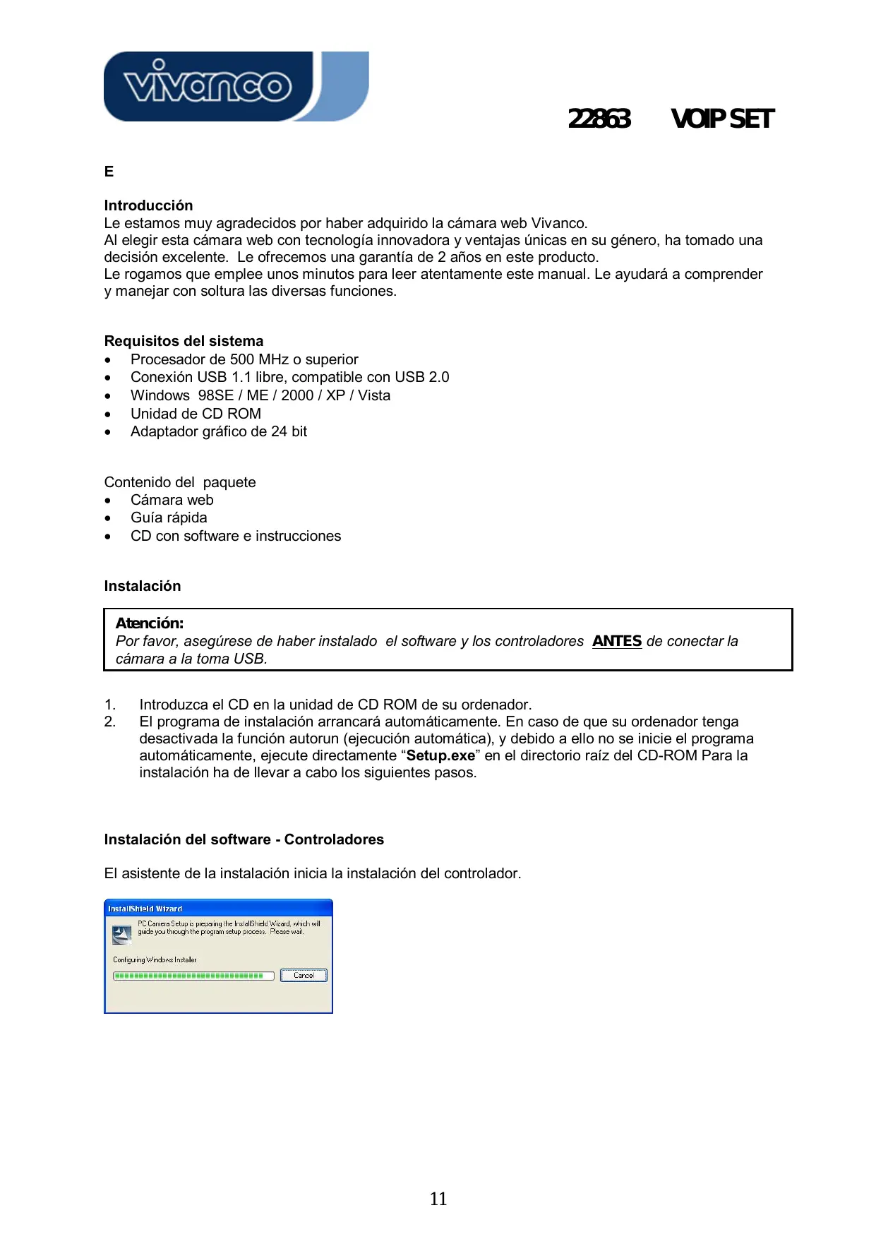 MANUAL DE USUARIO WEBPHONE SET WEBCAM VIVANCO