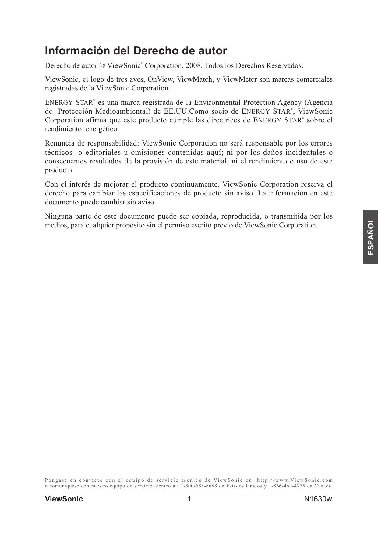Derecho de autor © ViewSonic Corporation, 2008. Todos los Derechos Reservados. ®