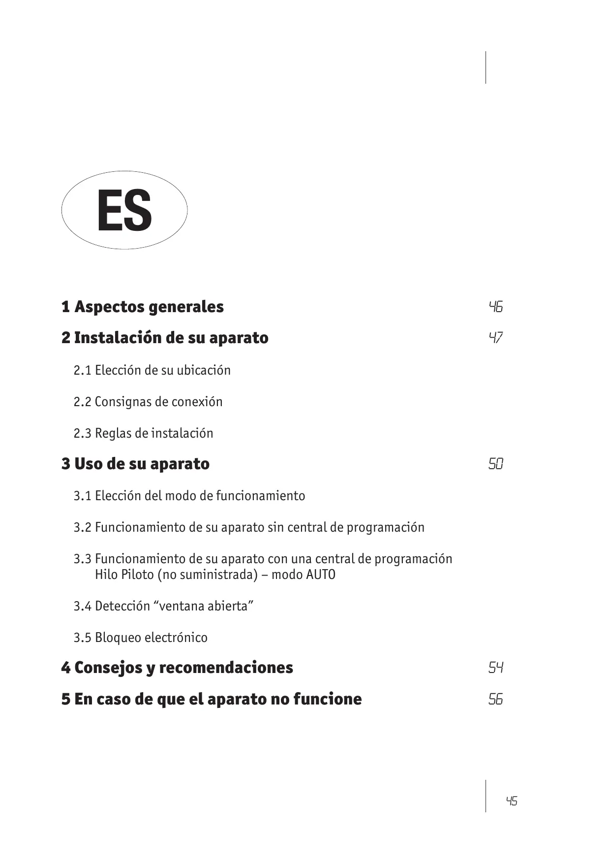 ES En caso de que el aparato no funcione, proceda usted mismo con las siguientes verificaciones asegurándose de que: - su radiador esté correctamente conectado y alimentado, - el modo seleccionado no sea el Paro calefacción, - la temperatura de consigna sea superior a la temperatura ambiente, conllevando de este modo el calentamiento del radiador, - el funcionamiento de su aparato se adapte en caso de “detección de ventana abierta”. Es posible que al ventilar su estancia, la caída de temperatura no sea suficiente para que dicha función se active. En dicho caso, su radiador seguirá en funcionamiento en modo normal. IMPORTANTE Si el cable de alimentación de la caja eléctrica está dañado, deberá ser reemplazado por el fabricante, por su servicio posventa o por una persona con una cualificación similar para evitar cualquier peligro.