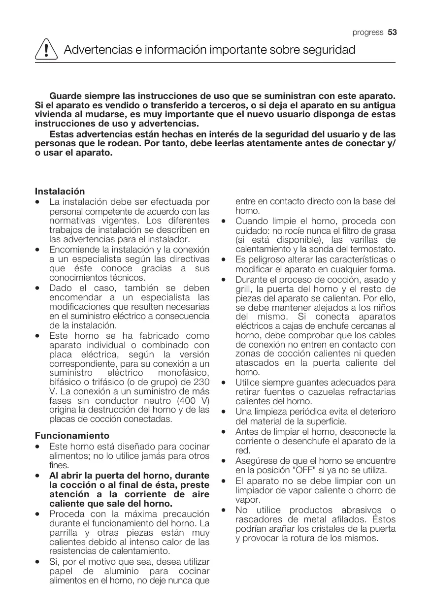 PHN1220X - Horno empotrado PROGRESS - Manual de uso y guía de instrucciones gratis