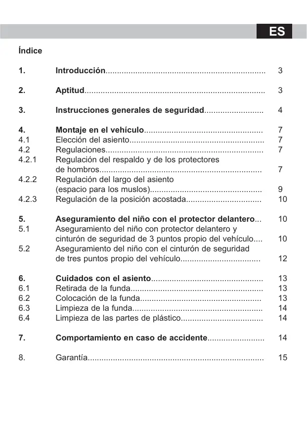 Antes de montar el asiento para niños por primera vez lea cuidadosamente las instrucciones de uso. Una utilización incorrecta puede poner en riesgo la vida de su niño. Siempre guarde las instrucciones de uso en el bolsillo previsto para ello en la funda del respaldo. De esa forma siempre las encontrará en su lugar. Muchas heridas fáciles de evitar son causadas por falta de pensar.