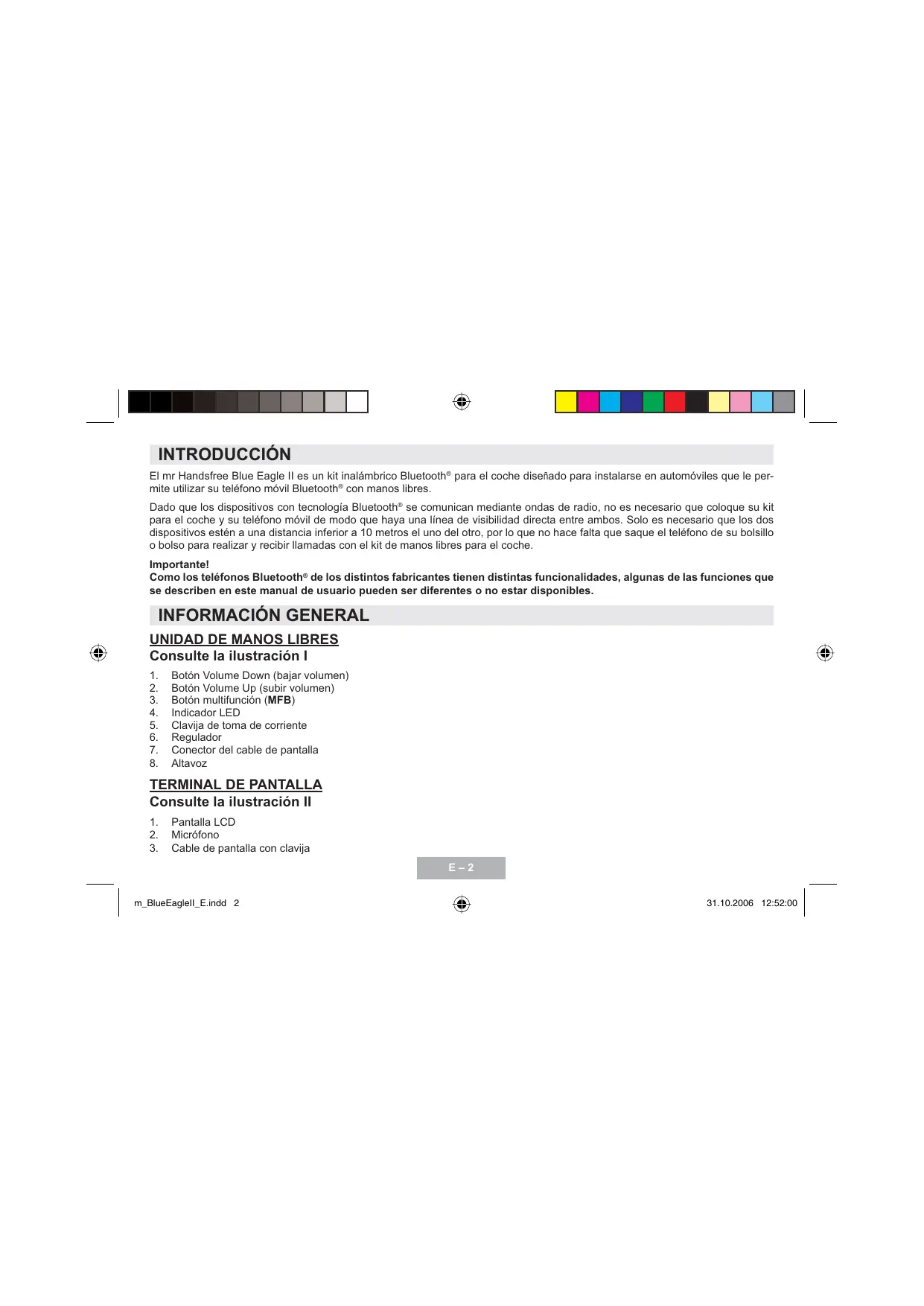 Encuentra gratis el manual del aparato BLUE EAGLE 2 MR HANDSFREE en formato PDF.