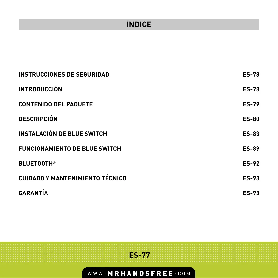 MANUAL DE USUARIO BLUE SWITCH MR HANDSFREE
