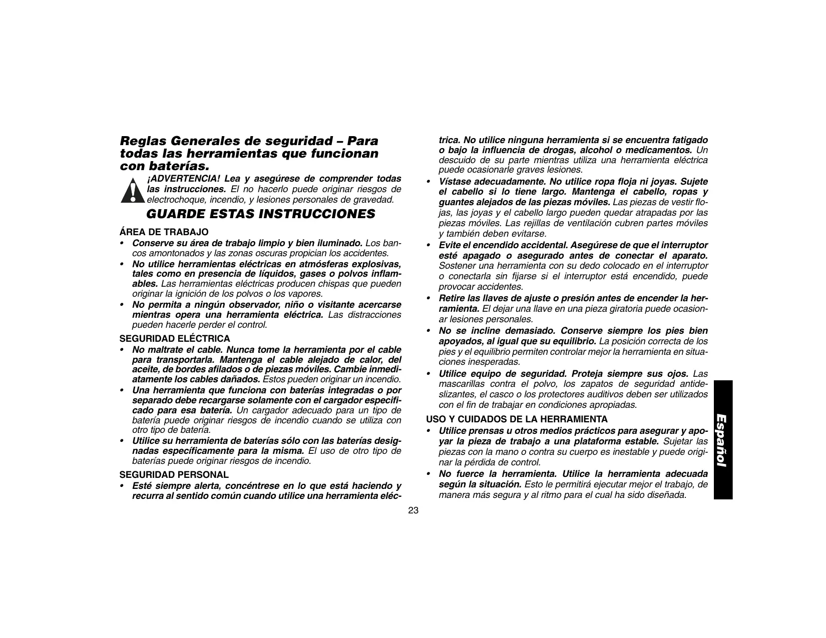 Reglas Generales de seguridad - Para todas las herramientos que funciona con baterías.