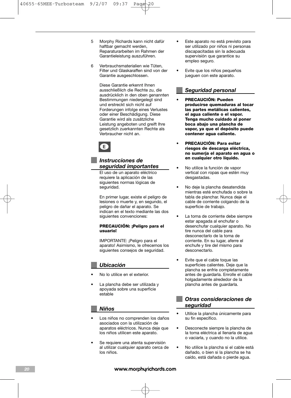 e Los productos Morphy Richards están concebidos solamente para usodoméstico. Morphy Richards tiene una política de mejora en la calidad ydiseño de sus artículos. La compañía, por lo tanto, se reserva el derecho decambiar en cualquier momento las especificaciones de sus modelos.