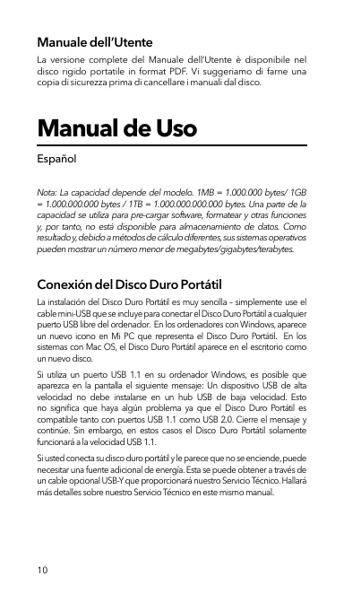 Una completa Guía del Usuario está disponible en formato PDF dentro de los Discos Duros Portátiles. Por favor, guarde una copia en un lugar distinto antes de borrar los manuales de su disco.