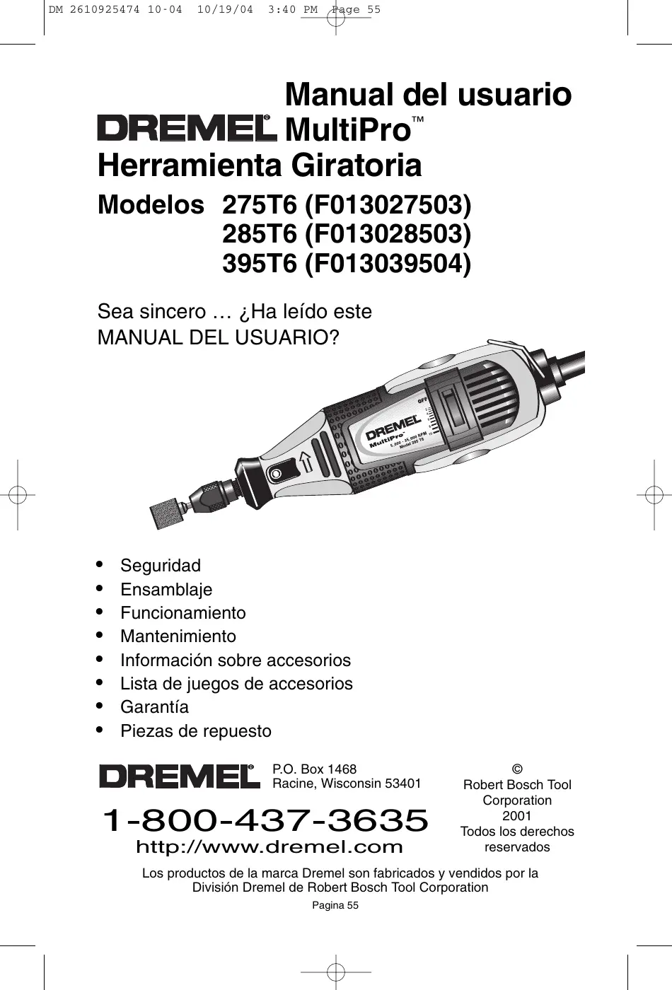 Encuentra gratis el manual del aparato 395T6 DREMEL en formato PDF.