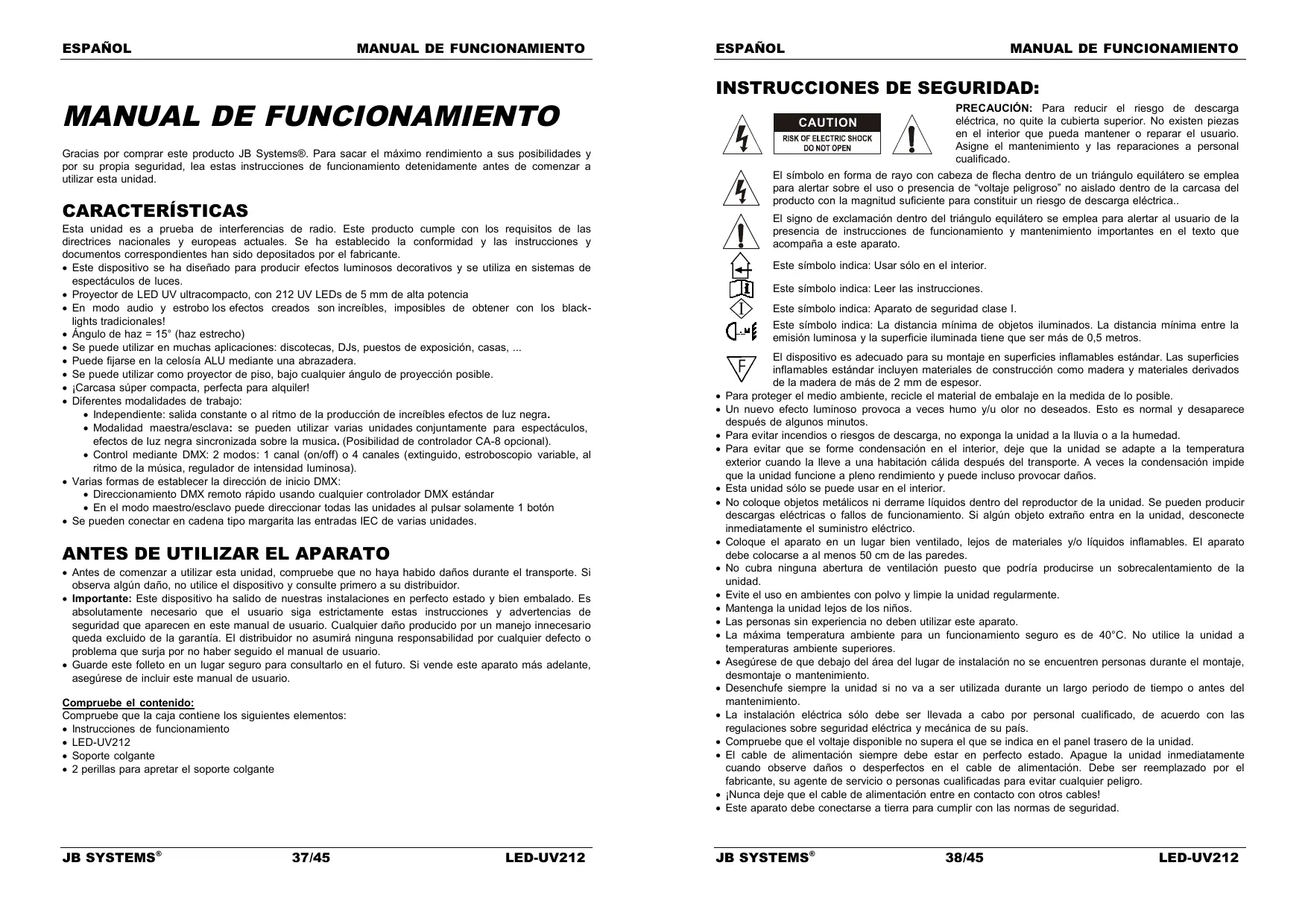 MANUAL DE USUARIO LED-UV212 JBSYSTEMS