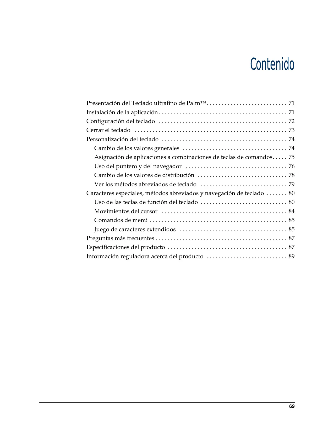 - CTRL+ALT+SHIFT+up arrow ¿ Contenido Presentación del Teclado ultrafino de Palm™ p. 71