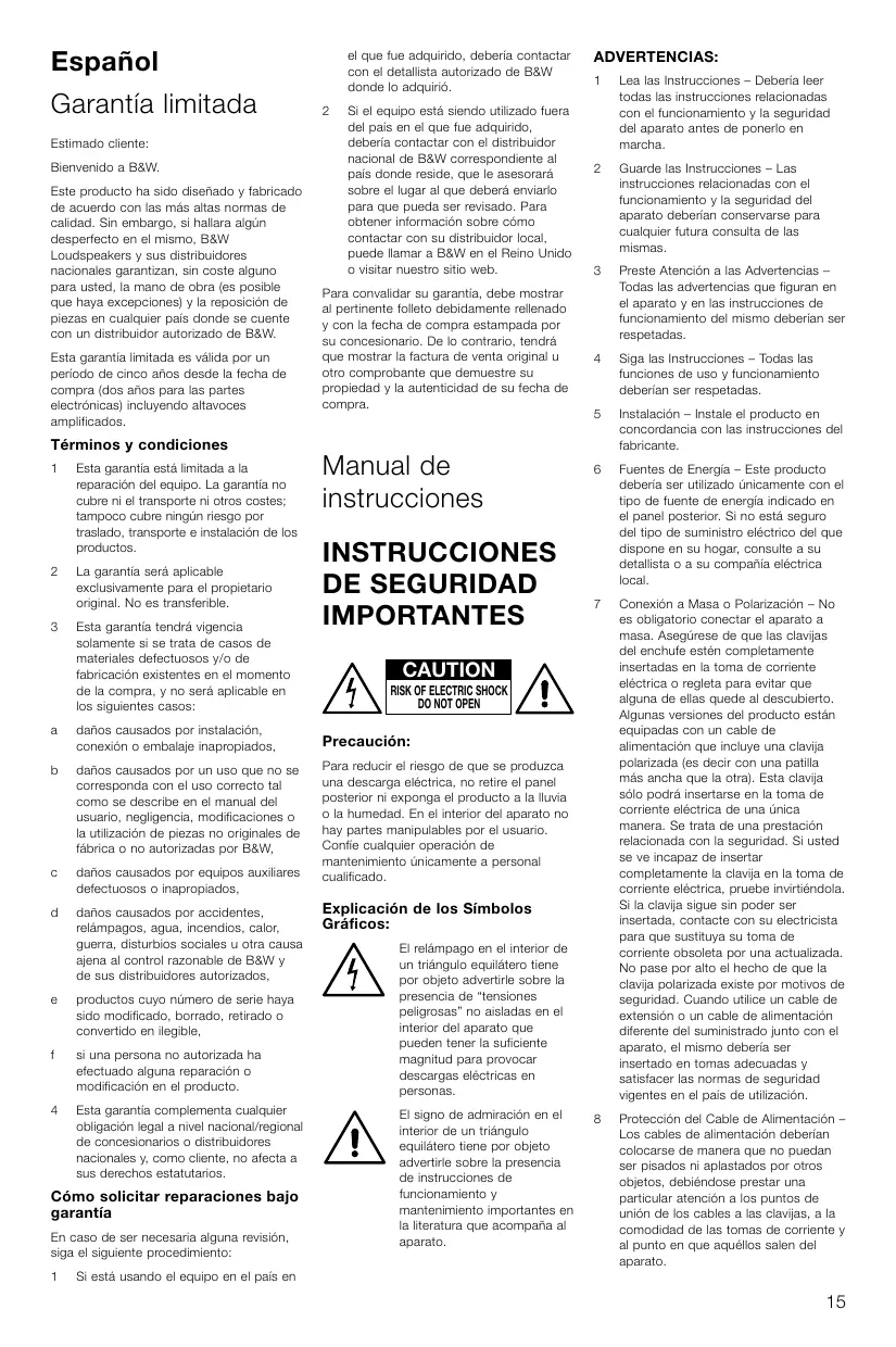 Descarga las instrucciones para tu Altavoz de estantería en formato PDF gratis! Encuentra tus instrucciones B&W ASW CDM - B&W y toma tu dispositivo electrónico nuevamente en la mano. En esta página están publicados todos los documentos necesarios para el uso de su dispositivo. B&W ASW CDM de la marca B&W.