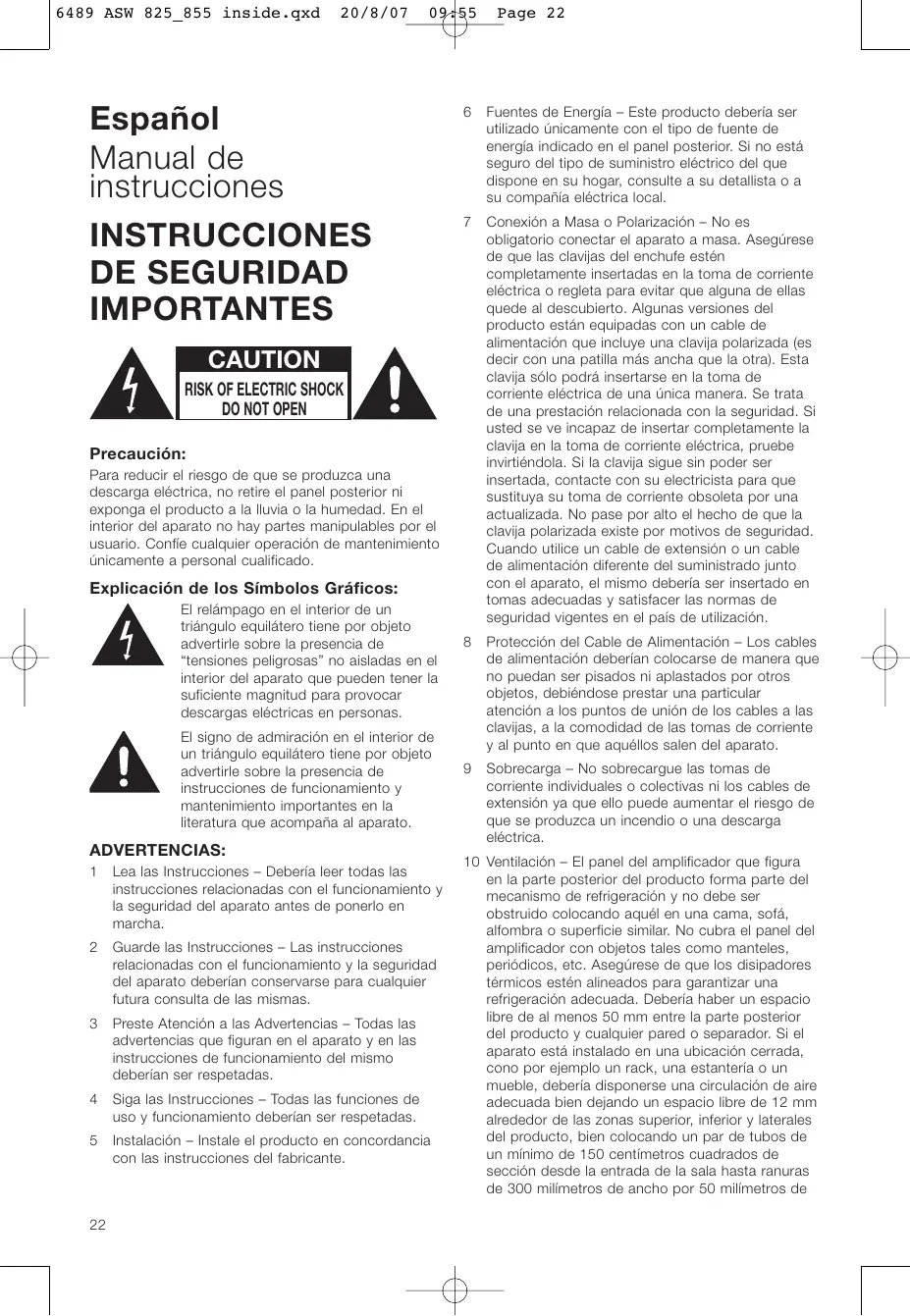 Preste Atención a las Advertencias – Todas las advertencias que figuran en el aparato y en las instrucciones de funcionamiento del mismo deberían ser respetadas.