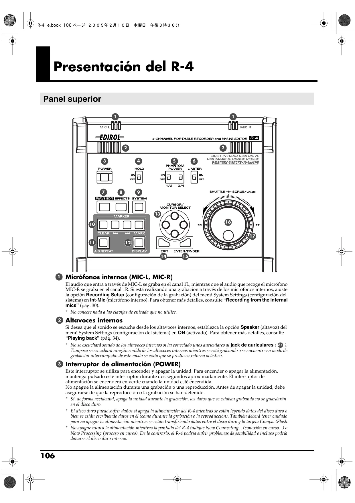 Encuentra gratis el manual del aparato R-4 EDIROL en formato PDF.